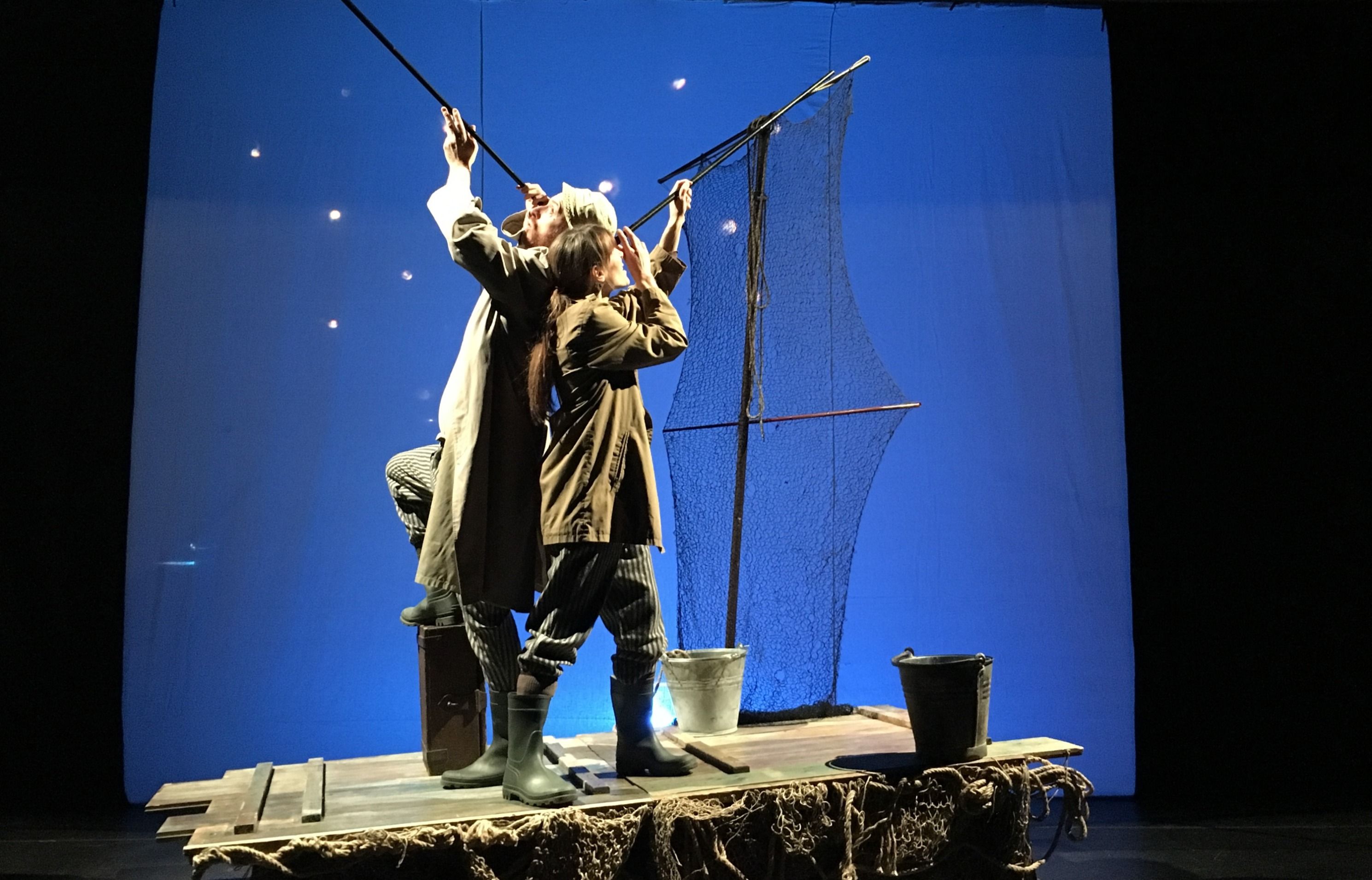 Un tempo in cui nell’universo c’era una certa confusione. Un tempo in cui Giove era il dio del cielo, Nettuno il dio del mare. Ma in quel tempo, a volte, il mare si rifletteva nel cielo. E il cielo nel mare. I pesci, saltavano per sbaglio nel cielo… diventando stelle. Le stelle cadevano nel mare... per trasformarsi in stelle marine. Per non parlare dei cavalli… cavallucci marini… costellazioni di cavalli alati. Le stelle non stavano al loro posto nel cielo. E i marinai che provavano, nel loro navigare, ad orientarsi con le stelle del cielo… si perdevano. Per questo c’erano La Signora Pescatrice e il Signor Pescatore di Stelle. Il loro compito era quello di ripescare le stelle che si tuffavano in mare e rimetterle al loro posto nel cielo… perché le stelle nel cielo raccontano delle storie come quella di Perseo e del suo cavallo alato… o quella di Fetonte e del carro del sole… Anche sulla terra vi sono stelle trasformate in fiori come i narcisi e un po’ Narciso è anche il Signor Pescatore.