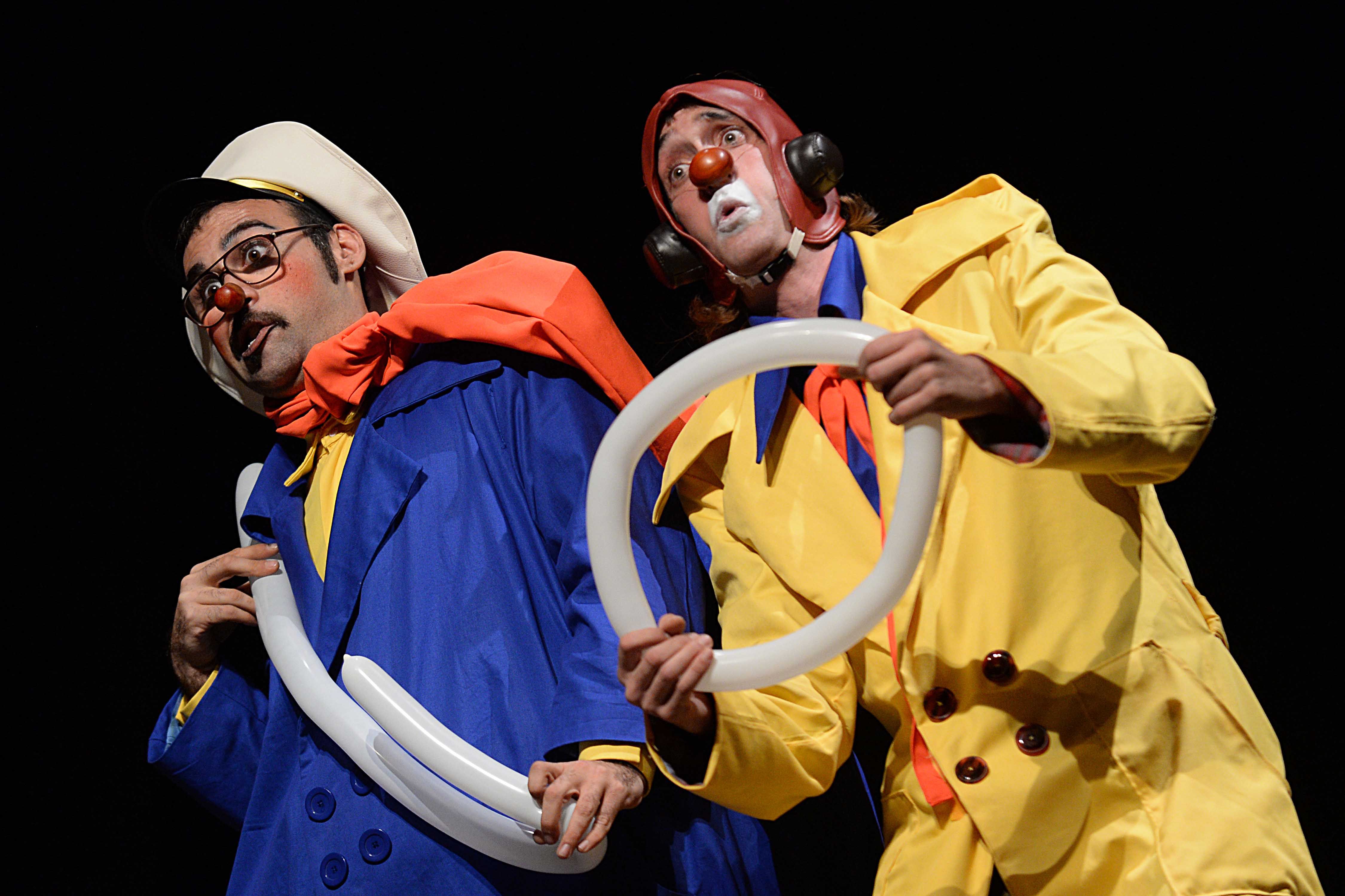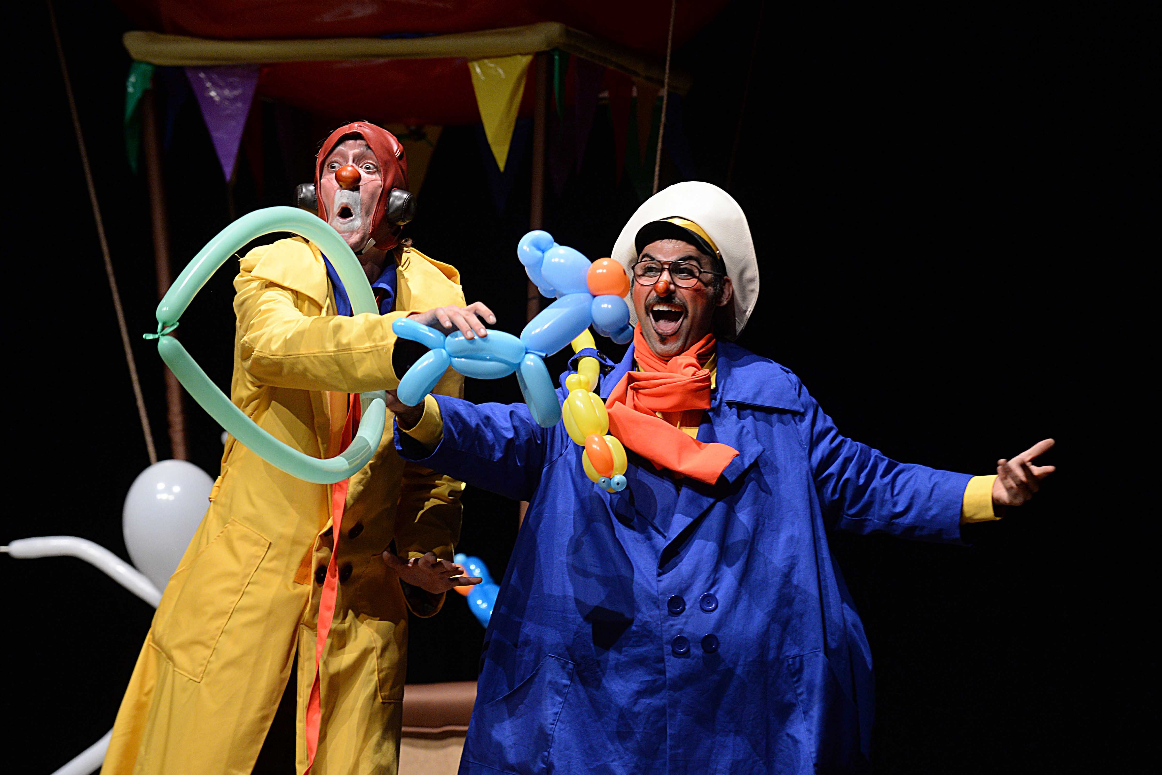 Indossano abiti colorati e accessori della tradizione del clown circense, scarpe lunghe e naso rosso. Nello spettacolo sono presenti diverse tecniche tra cui manipolazione di palloncini, giocoleria, numero dell'uomo nel pallone, pantomima.