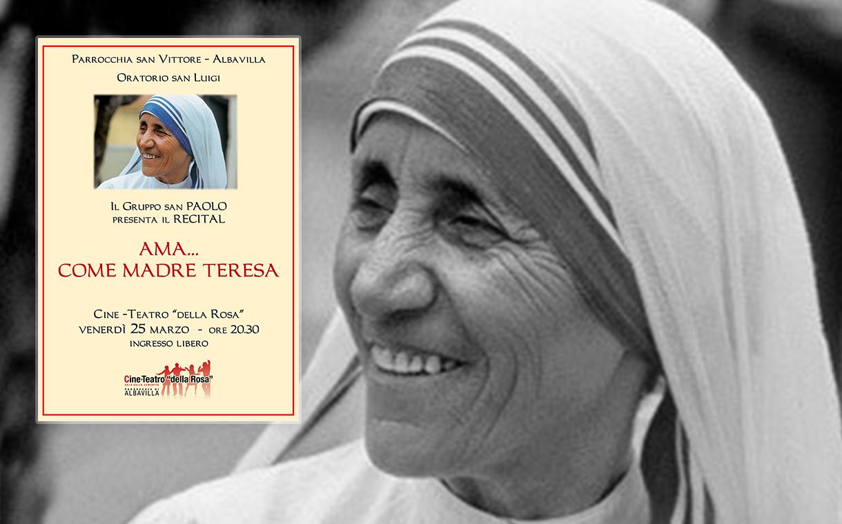 Questo spettacolo sarà un veloce percorso nella vita di Santa Madre Teresa, di come ha scoperto la sofferenza, l’ha resa parte della sua vita quotidana cercando di aiutare i poveri e i più bisognosi.